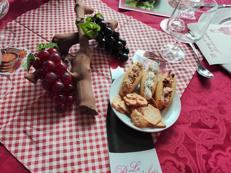 Au menu : Apéritif avec ses amuses bouches , une assiette de charcuterie, une délicieuse pintade sauce vigneronne accompagnée de polenta crémeuse et de jeunes carottes glacées, suivie d’un fromage et d’une poire au vin.