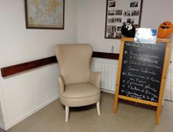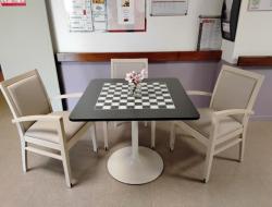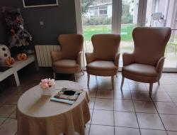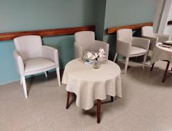 De nouveaux fauteuils au salon du rez de chaussée et devant le bureau médical , chaises et une table de jeux ont pris place au 1er étage.