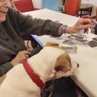 Publiée le 18/11/2025Après des vacances bien méritées, Sherlock est de retour à la résidence, et n'a pas perdu ses bonnes habitudes: il sait se faire apprécier de ces dames, et mérite bien une petite récompense lorsqu’il a bien travaillé. Après un jeu de hasard avec un dé aux résultats forts aléatoires, les résidentes ont pu cajoler leur petit chien préféré : une bonne séance [...] Lire la suite