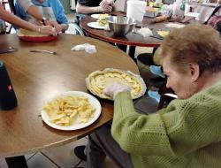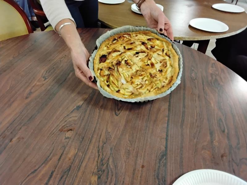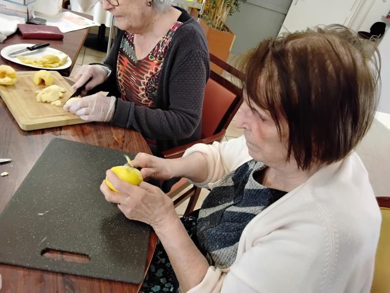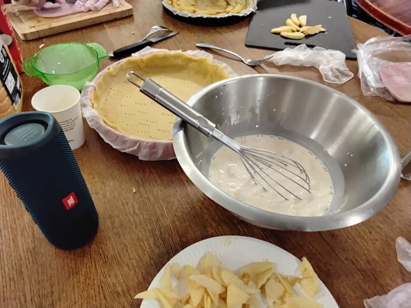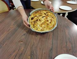 Au programme de cet après-midi culinaire : la réalisation d’une recette sucrée et d’une recette salée. Les participants ont mis la main à la pâte pour préparer une tarte aux pommes et une quiche lorraine : confection de la pâte brisée maison, épluchage des pommes, préparation de la garniture… Un vrai travail d’équipe dans la bonne humeur !
