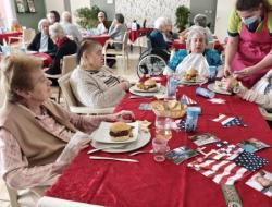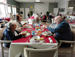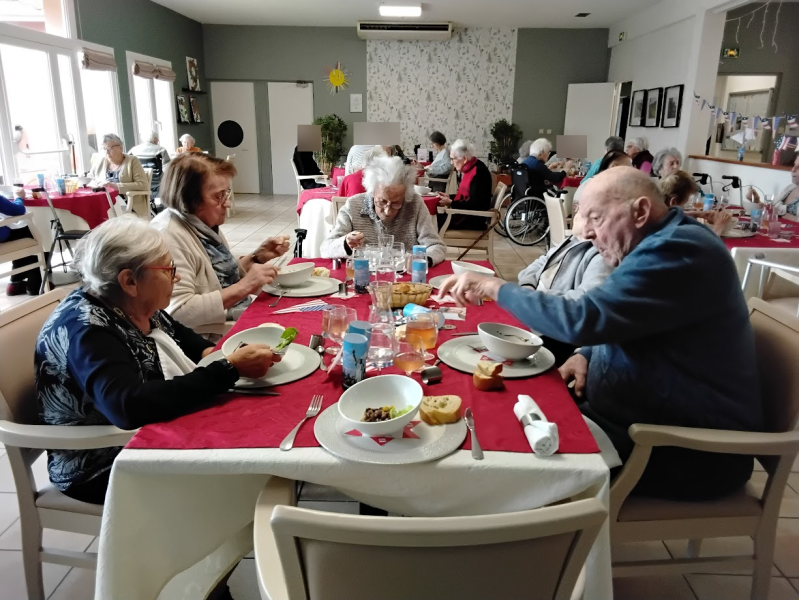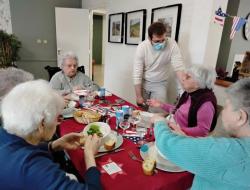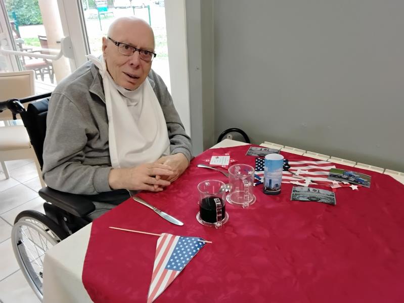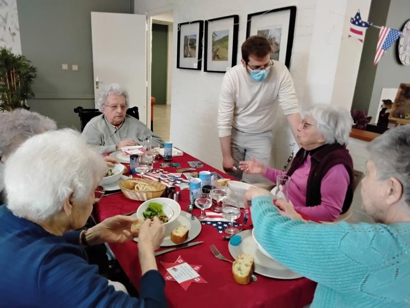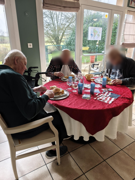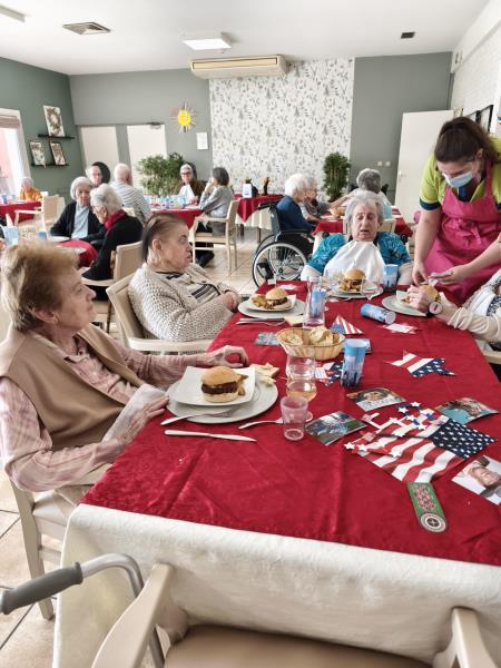 Mercredi 11 février à midi, les résidents ont voyagé direction les États-Unis le temps d’un repas à thème. Les tables et la salle a manger décorée pour ce thème , créant une ambiance chaleureuse et festive.