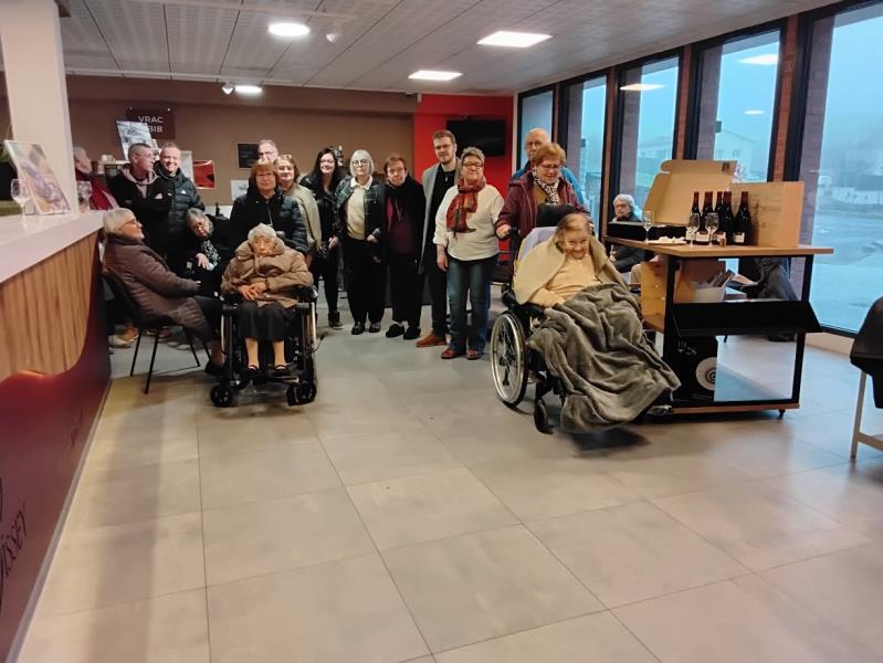 Samedi 24 Janvier après-midi,une sortie conviviale a été organisée avec les résidents et leurs familles à la cave de Bissey-sous-Cruchaud. Les résidents étaient accompagnés de Monsieur Le Roux, directeur de l’établissement, de Sandrine, animatrice, de Géraldine J. et de Sylvia, aide-soignante et M. Breillaud président du CVS.